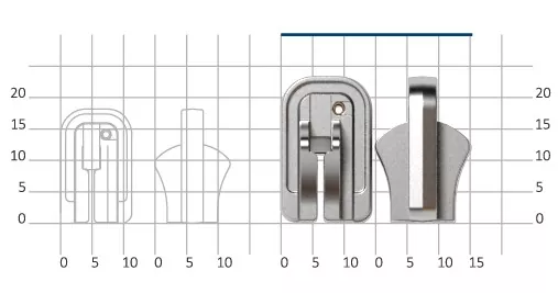 The basic structure of the TRC reversible zipper pull is based on its rotating central axis and double-sided zipper. The upper part of the pull features a 360°rotating joint. This allows the zipper to slide in all directions while maintaining the optimal opening angle. Alignment with the zipper guide rail is thus guaranteed, regardless of the opening direction (front or back). The zipper teeth therefore glide smoothly in both directions. Meanwhile, the TRC reversible puller's internal guide rails are precision-engineered. Their symmetrical sliding structure ensures smooth, bidirectional movement, preventing jamming or misalignment due to variations in the opening angle. This design gives the TRC reversible puller exceptional flexibility in terms of direction and opening angle, as well as numerous possible applications. It is suitable for reversible garments, outdoor gear, and functional designs requiring use from both sides, thus offering true bidirectional functionality.