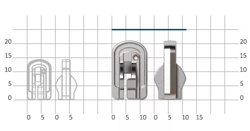 The basic structure of the TRC reversible zipper pull is based on its rotating central axis and double-sided zipper. The upper part of the pull features a 360°rotating joint. This allows the zipper to slide in all directions while maintaining the optimal opening angle. Alignment with the zipper guide rail is thus guaranteed, regardless of the opening direction (front or back). The zipper teeth therefore glide smoothly in both directions. Meanwhile, the TRC reversible puller's internal guide rails are precision-engineered. Their symmetrical sliding structure ensures smooth, bidirectional movement, preventing jamming or misalignment due to variations in the opening angle. This design gives the TRC reversible puller exceptional flexibility in terms of direction and opening angle, as well as numerous possible applications. It is suitable for reversible garments, outdoor gear, and functional designs requiring use from both sides, thus offering true bidirectional functionality.